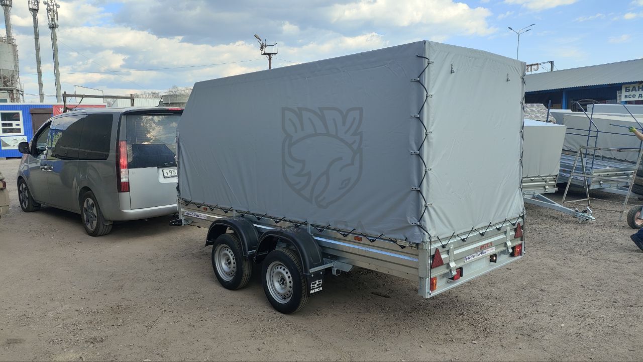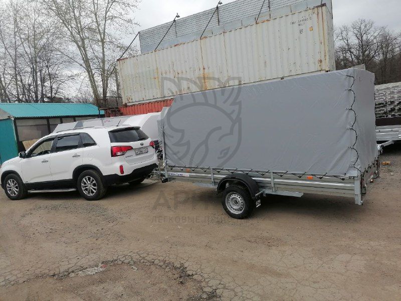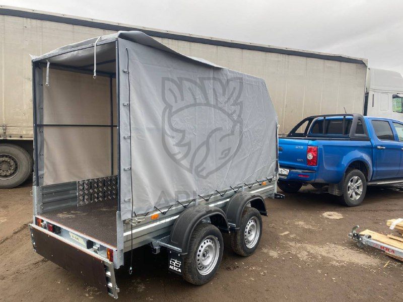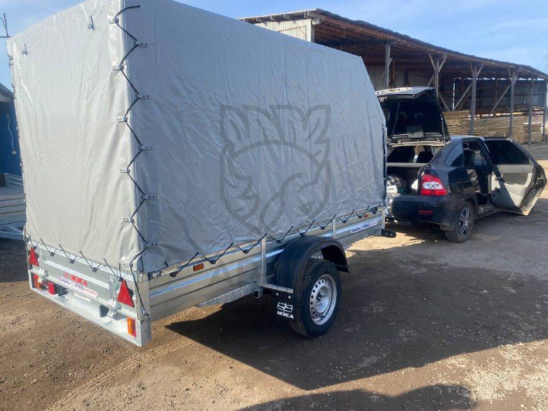 Высокие не всегда удобны, мы рекомендуем покупать такие прицепы для перевозки сыпучих легких грузов, например: торф. Если груз выступает за габариты борта, его необходимо крепить стяжными ремнями.8. прицеп с тентом