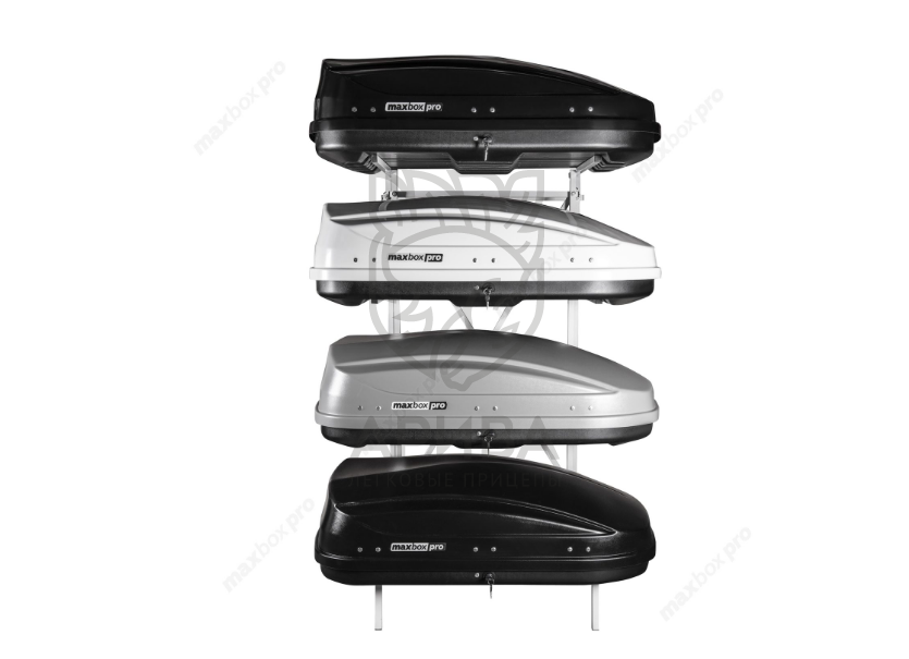 Отличительная особенность конструкции автобоксов MaxBox PRO - это универсальные крепежи, которые совместимы с большинством багажных систем, устанавливаемых на крышу автомобиля.