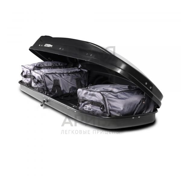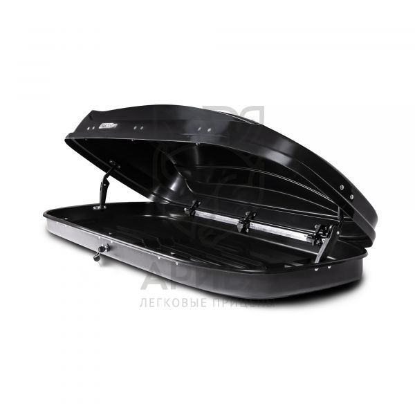Длина бокса 196 см. Внутрь поместятся лыжи или доска для сноуборда. Открывается как справа так и слева. Не нужно беспокоиться о том, как бы поудобнее поставить автомобиль. Оптимален для авто с длинной крышей. Обладает улучшенной аэродинамикой. Надежные П-образные крепления совместимы с большинством багажных систем, устанавливаемых на крышу автомобиля.