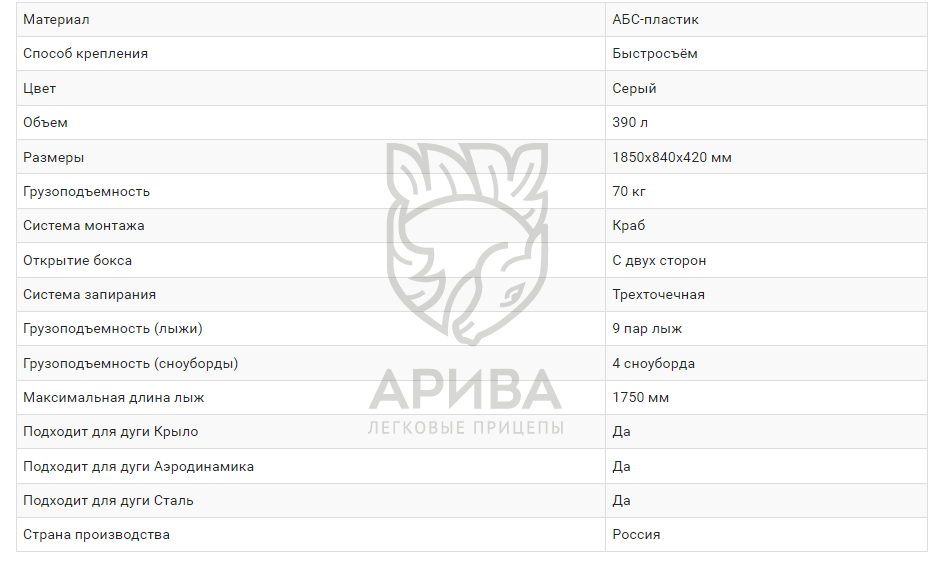 | Размер бокса: | 1850х840х420 мм |
