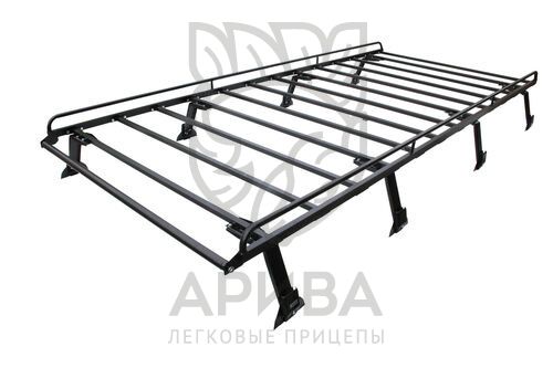 Покрытие платформы – полиэфирная порошковая краска. Максимальная грузоподъемность платформы 150 кг. При этом общий вес груза не должен превышать грузоподъемности, указанной в технической документации на автомобиль. 11 поперечин, плюс 1 поворотная .