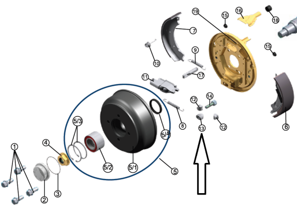 Ступицы, тормозные барабаны, детали колёсного тормоза