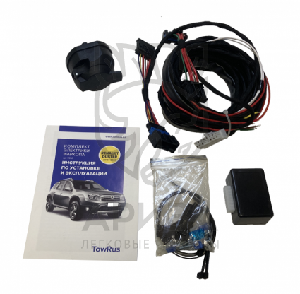 Комплект состоит из блока управления, жгута проводов со штатными колодками, розеткой ТСУ 7-pin, установочным комплектом.