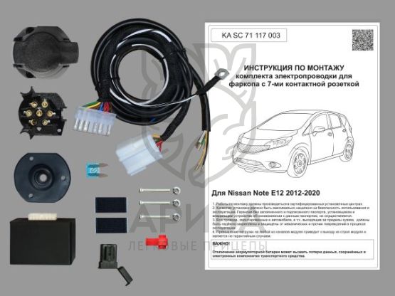 Купить Комплект электропроводки для фаркопа 7-pin Nissan Note E12 2012-2016 с блоком в городах Казань, Уфа, Ижевск, Набережные Челны, Чебоксары по низким ценам. Большой выбор недорогих прицепов, фаркопов, автобоксов, запчастей для легковых прицепов. Быстрая доставка. Оригинальные товары, гарантия, рассрочка, распродажи, скидки и акции. Огромный ассортимент. Реальные отзывы покупателей