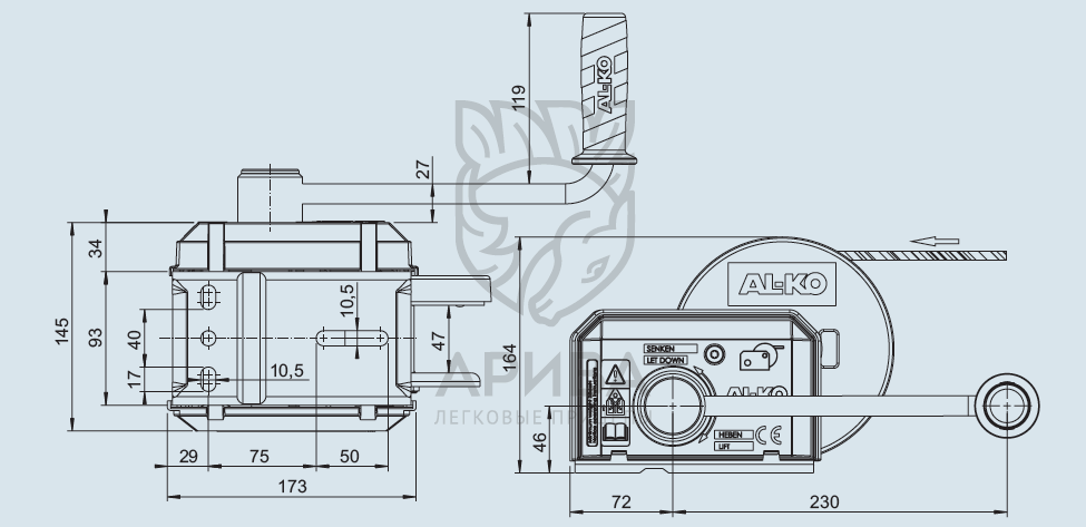 Лебедка для прицепа ручная c тормозом 500кг ALKO PLUS