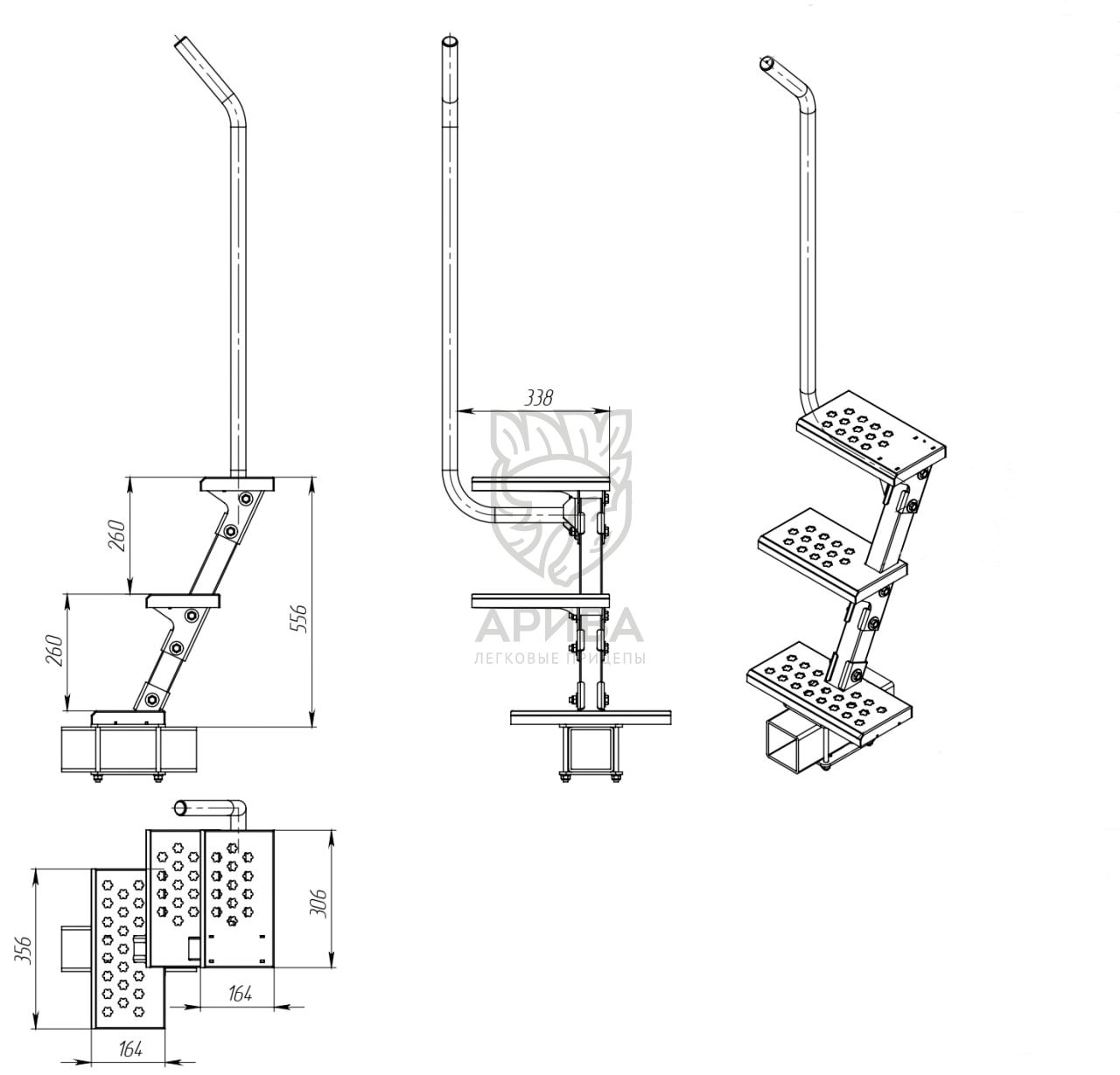 Лестница на дышло лодочного прицепа /ПРАКТИК ПРО/ 3 ступени