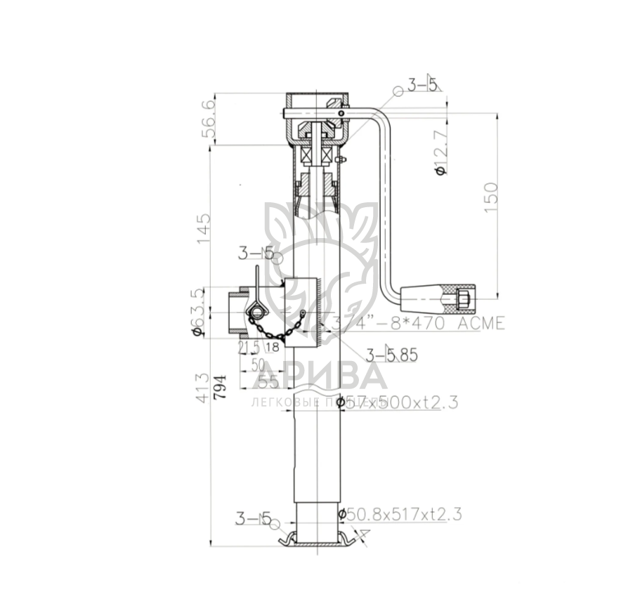 Опорная стойка подъемная TRAILERCOM TW (до 900кг)