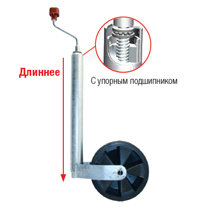 Опорное колесо для прицепа D=48, 150 кг, L=560(+250) PLUS Диск-пластик