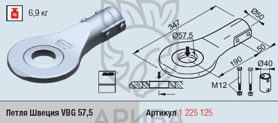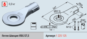 Петля дышла прицепа диаметр кольца d=57,5, посадочное d=50, нагрузка 500-1000 кг с крепежом, Тип 101 VB