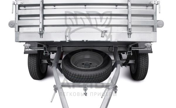 Оцинкованный держатель запасного колеса R13 для установки на дышло под откидную платформу одноосных прицепов МЗСА общего назначения с полной массой до 750 кг.