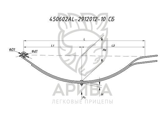 Рессора на прицеп МЗСА (ЧМЗ), 2-х листовая, 45х6х2L, г/п 180кг