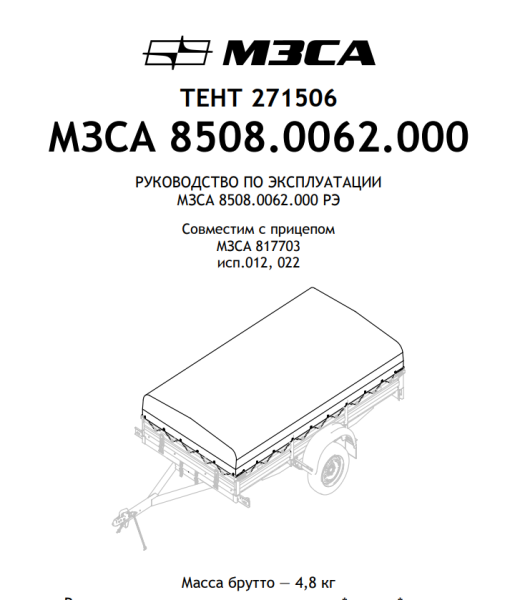 Тент для прицепа 351506 МЗСА (8508.0087) 817717 исп.022 (012,015,025), 817732 исп.022(012,015,025) Н500 мм