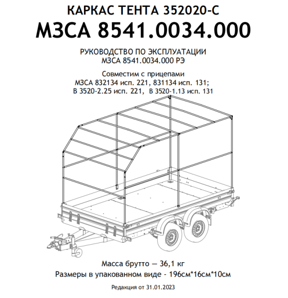 Тент для прицепа 352020 МЗСА В 3520-2.25 исп.221 Н=2000 мм