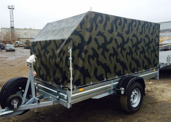 Тент КАМУФЛЯЖ "под скобы" для прицепа 251415С МЗСА 817704 исп.012 Н=1500 (1700) мм, под СКОБЫ+ТРОС Угол скоса - 45° (Нужна установка скоб!!!)