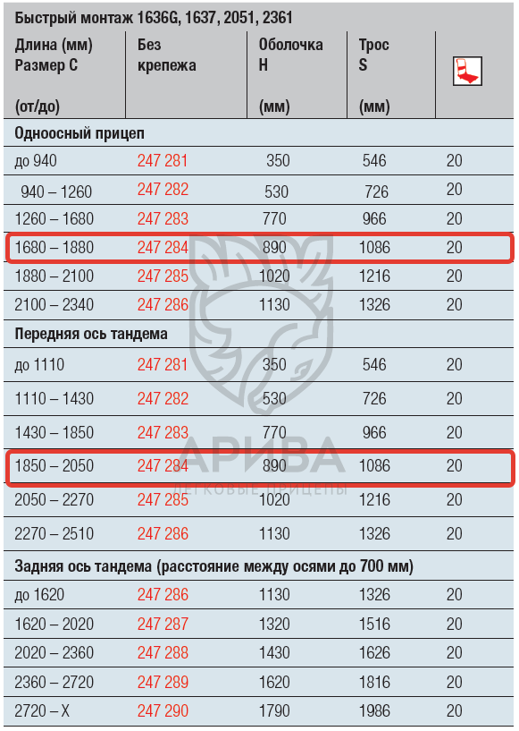 Данная длина троса подходит для осей: