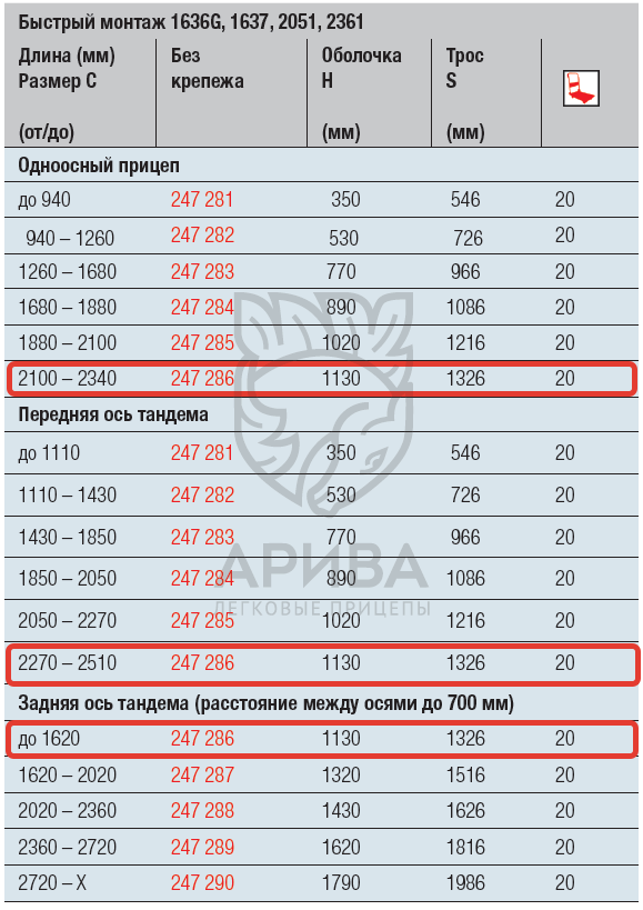 Данная длина троса подходит для осей: