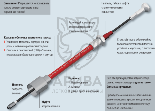 Тормозной трос прицепа ALKO S=726 H=530, быстромонтируемый