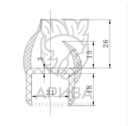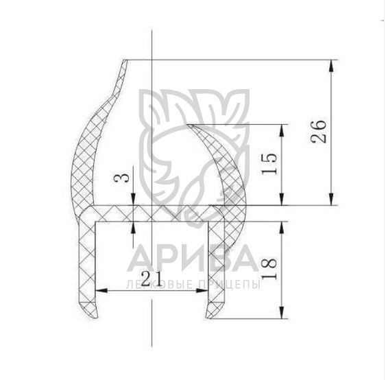 Уплотнитель для ворот прицепа, на пластиковой основе 21 мм (5м)