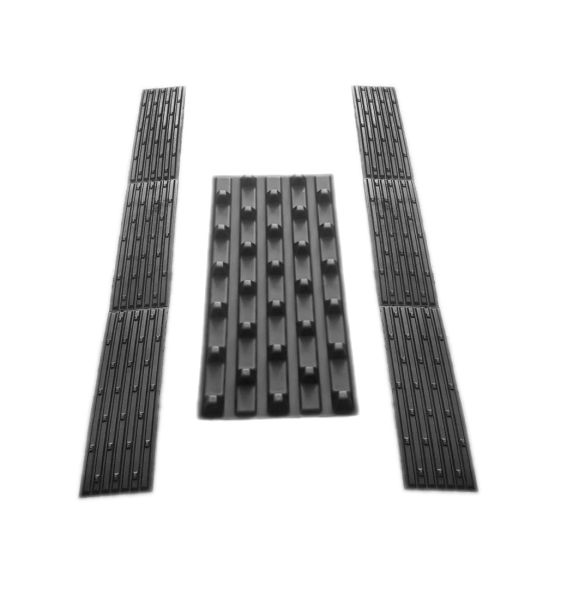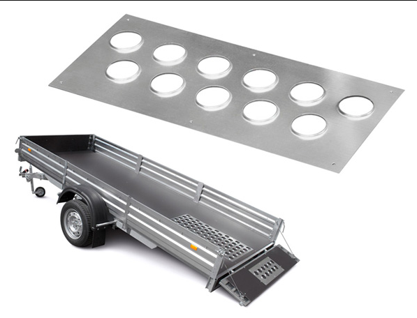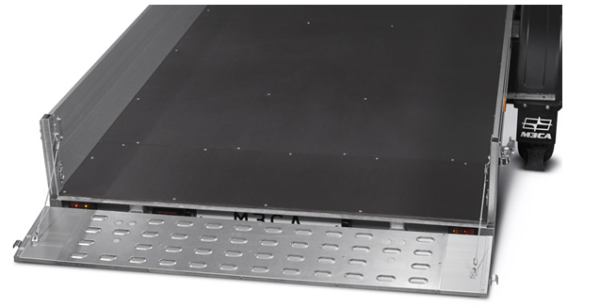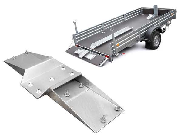 Пластиковые направляющие имеют также специальные зацепы для квадроциклов, которые сдерживают колеса от пробуксовывания. Можно остановиться на наклоненной платформе и начать движение без пробуксовывания. Направляющие для мотоциклов позволяют колесам не скользить поперек прицепа, тем самым снижается риск уронить мотоцикл. Захват переднего колеса мотоцикла обеспечивает перевозку мотоцикла. Всегда стоит помнить, что технику в прицепе следует крепить минимум двумя стяжными ремнями. Для крепления стяжных ремней используют крепежные петли.