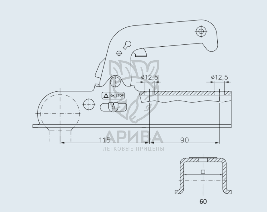 Замковое устройство прицепа WW 150-VF+HOL