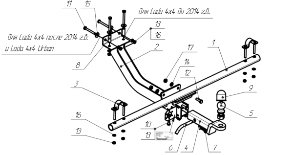 Фаркоп Лада Нива 4x4 Urban 2014-, Лада 4x4 2121 1977-, Лада 4x4 21213, 21214 1993-, Лада 4x4 2131, 2129 1995- 1238-E