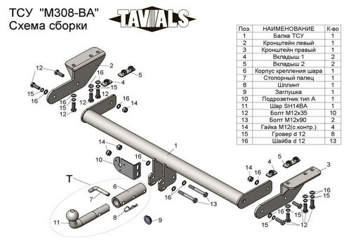 Фаркоп для Газель Бизнес 2705 с кованым фланцевым шаром T-GAZ-12F