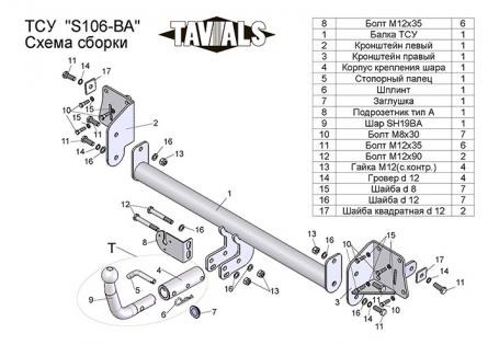 Фаркоп Ssang Yong Tivoli 2x4 2016-, Ssang Yong XLV 2x4 2016- крюк разборный на двух болтах, балка закрытая 29.3318.12
