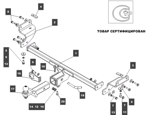Фаркоп с оцинк. шаром Renault Sandero Stepway 2014-, Renault Logan Stepway 2019-, Renault Logan 2004-2014, 2014-, Renault Sandero 2014- 91717-A