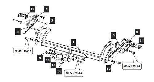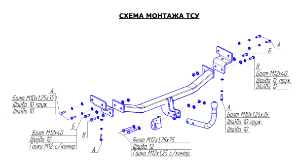 Фаркоп Kia Sorento 2012-2015, Hyundai Santa Fe 2012-2015, 2015-2018, Hyundai Grand Santa Fe 2014-2018 крюк разборный на двух болтах, балка закрытая 11.2574.12