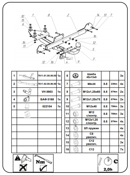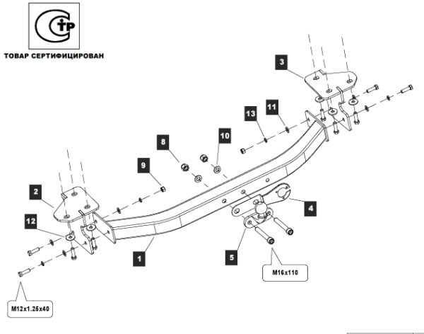 Фаркоп Suzuki SX4 Cross 2013- крюк разборный на двух болтах, балка закрытая 23.2523.12