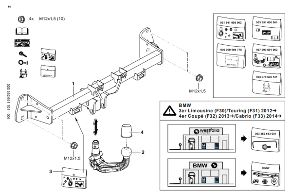 Фаркоп BMW 3-Series F30/F31 седан/универсал 2012-2018, BMW 4-Series купе F32 2014-2021, BMW 4 Series Gran Coupe F36 2014-2021 303352600001