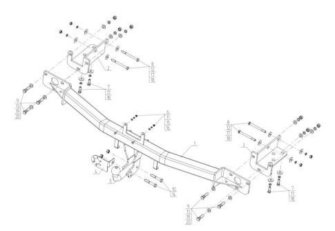 Фаркоп Mercedes Sprinter 3550 мм/4025 мм фург. 1995-2006, Sprinter Classic 2013- без ступ., VW 3550 мм/4025 мм 1995-2006 без ступ. фланц. крепл. шара M.007