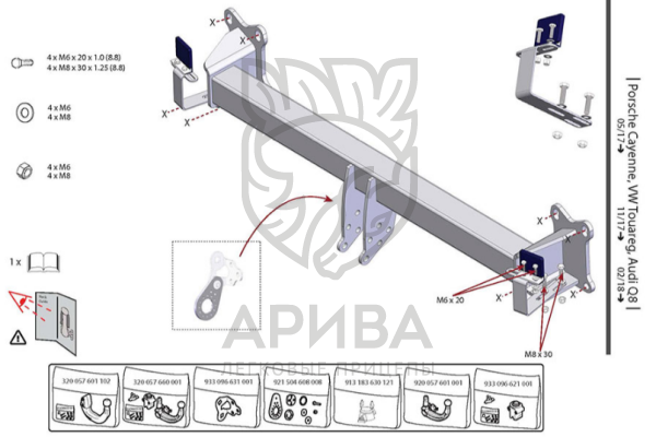 Фаркоп с электрикой 13-контактов на Volkswagen Touareg 2018-, Audi Q8 2018-, Audi SQ8 2020-, Porsche Cayenne 2017-, Porsche Cayenne Coupe 2019- 322064900113