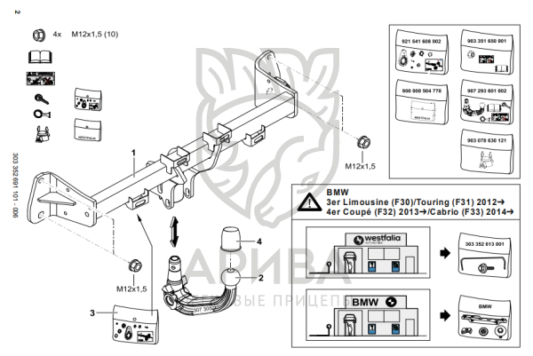 Фаркоп BMW 3-Series F30/F31 седан/универсал 2012-2018, BMW 4-Series купе F32 2014-2021, BMW 4 Series Gran Coupe F36 2014-2021 303352600001