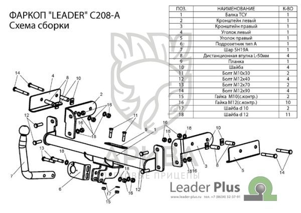 ( семиконтактной розеткой , монтажными проводами, крепежом , защитным колпачком и паспортом) и упакован в термоусадочную пленку. Для окраски фаркопа «Leader» используется полимернопорошковая краска с повышен-ной износоустойчивостью.