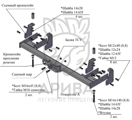 Конструкция ТСУ – разборная, (преимущества разборной модели проявляются при монтаже на автомобиль, транспортировке и складировании).