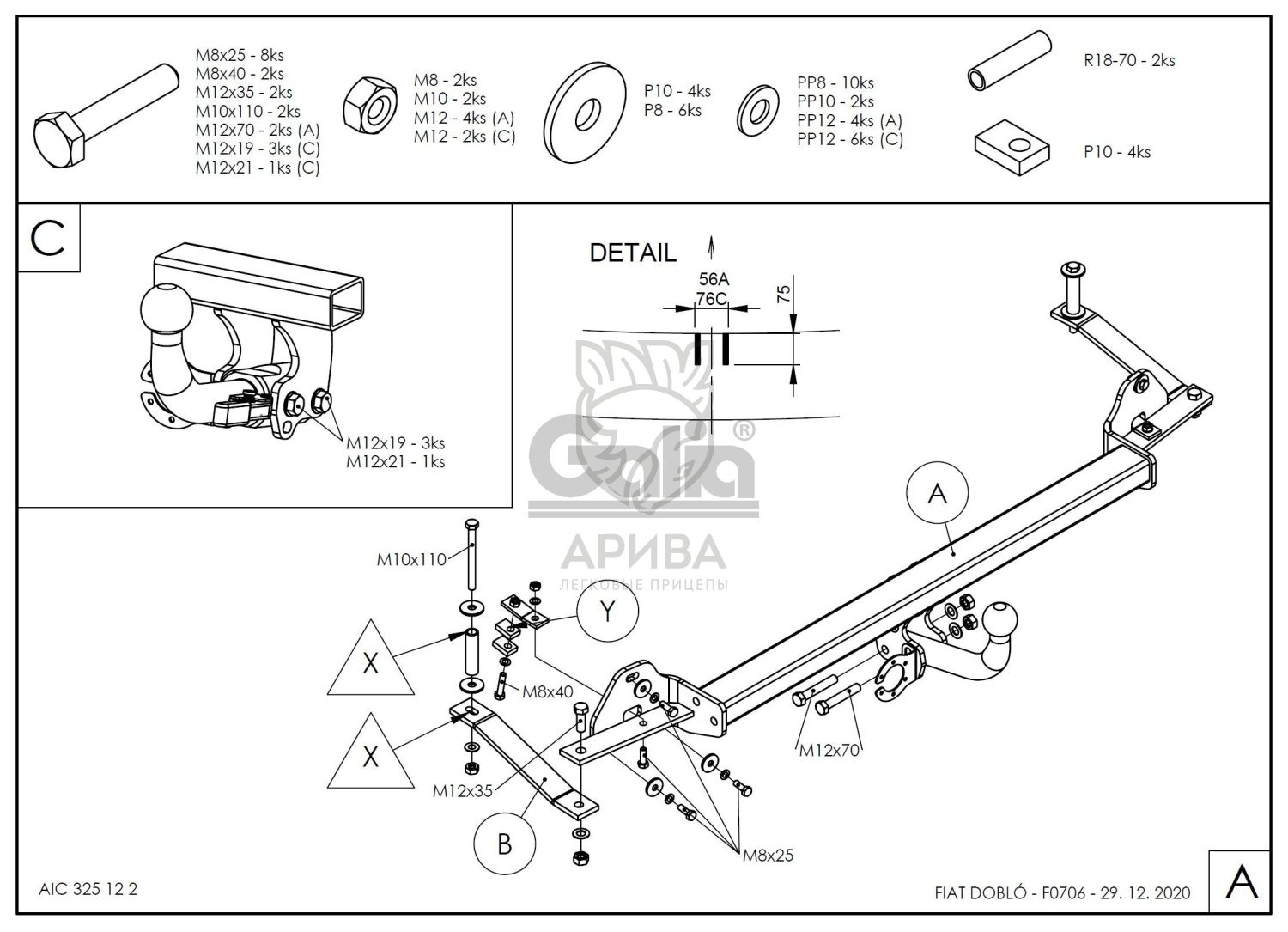 Фаркоп оцинкованный FIAT Doblo 2001-2010 быстросъемное крепление шара F070C