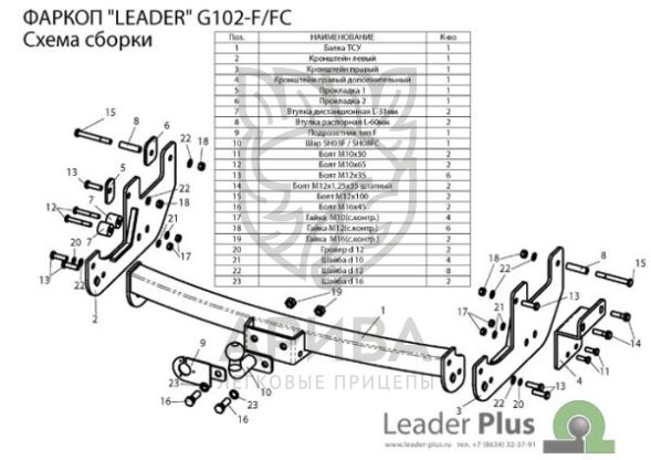 Фаркоп «Leader» легко устанавливается на штатные места автомобиля, предусмотренные заводом-изготовителем,без сверления дополнительных отверстий в кузове. Снятия и подрезки бампера не требуется.