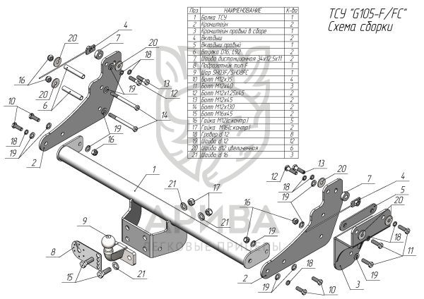 Фаркоп Грейт Вол (Great Wall) Poer 2021- со сварным фланцевым шаром G105-FC