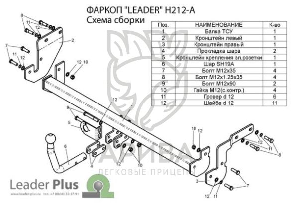Фаркоп «Leader» легко устанавливается на штатные места автомобиля, предусмотренные заводом-изготовителем,без сверления дополнительных отверстий в кузове. Снятия и подрезки бампера не требуется.