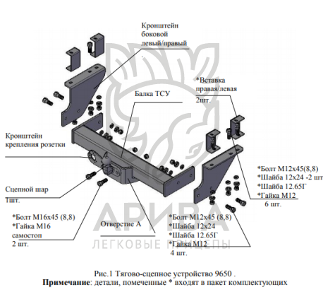 Конструкция ТСУ – разборная (преимущества разборной модели проявляются при монтаже на автомобиль, транспортировке и складировании).