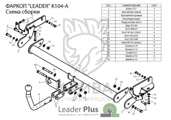 Фаркоп «Leader» легко устанавливается на штатные места автомобиля, предусмотренные заводом-изготовителем,без сверления дополнительных отверстий в кузове. Снятия и подрезки бампера не требуется.