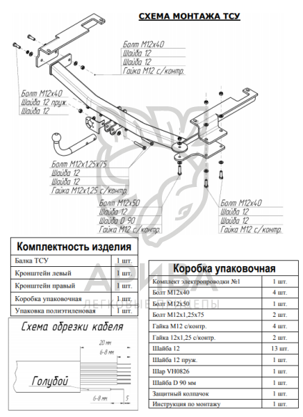 - Копия сертификата на установку фаркопа, заверенная нашей организацией