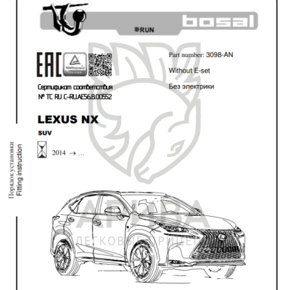 Фаркоп Лексус (Lexus) NX 2014-, подходит для версии Turbo. 3098-AN