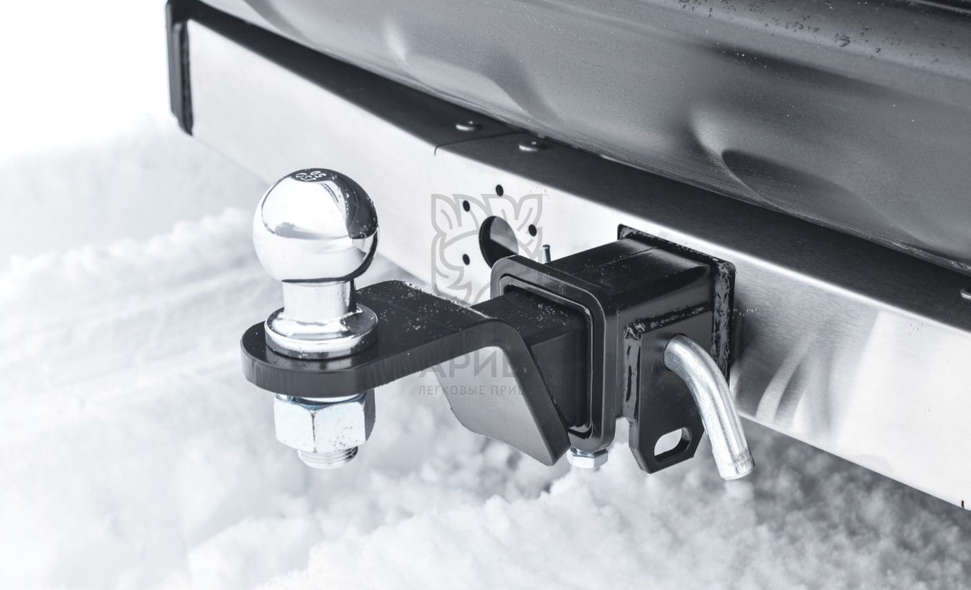 Крепеж оцинкован. При установке изделия на автомобиль шаровый наконечник не ухудшает видимость и не закрывает задний номерной знак.