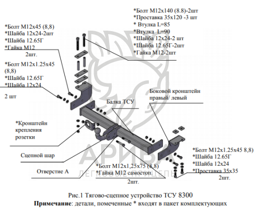 При установке ТСУ на автомобиль: