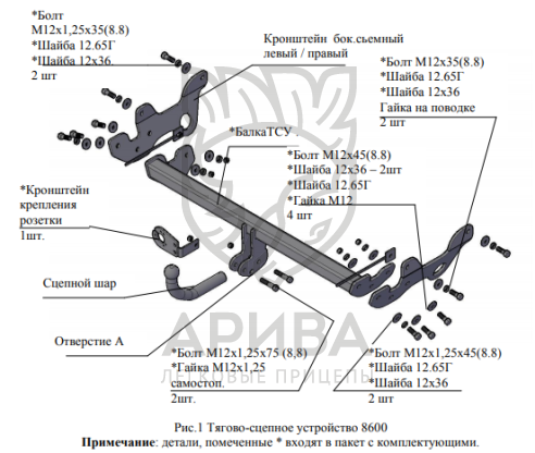 Конструкция ТСУ – разборная, (преимущества разборной модели проявляются при монтаже на автомобиль, транспортировке и складировании).