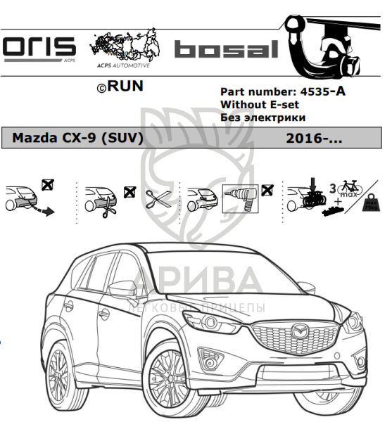 Купить Фаркоп Мазда (Mazda) CX-9 2016- 4535-A в городах Казань, Уфа, Ижевск, Набережные Челны, Чебоксары по низким ценам. Большой выбор недорогих прицепов, фаркопов, автобоксов, запчастей для легковых прицепов. Быстрая доставка. Оригинальные товары, гарантия, рассрочка, распродажи, скидки и акции. Огромный ассортимент. Реальные отзывы покупателей