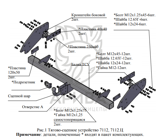 Конструкция ТСУ – разборная (преимущества разборной модели проявляются при монтаже на автомобиль, транспортировке и складировании).