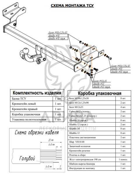 - Копия сертификата на установку фаркопа, заверенная нашей организацией